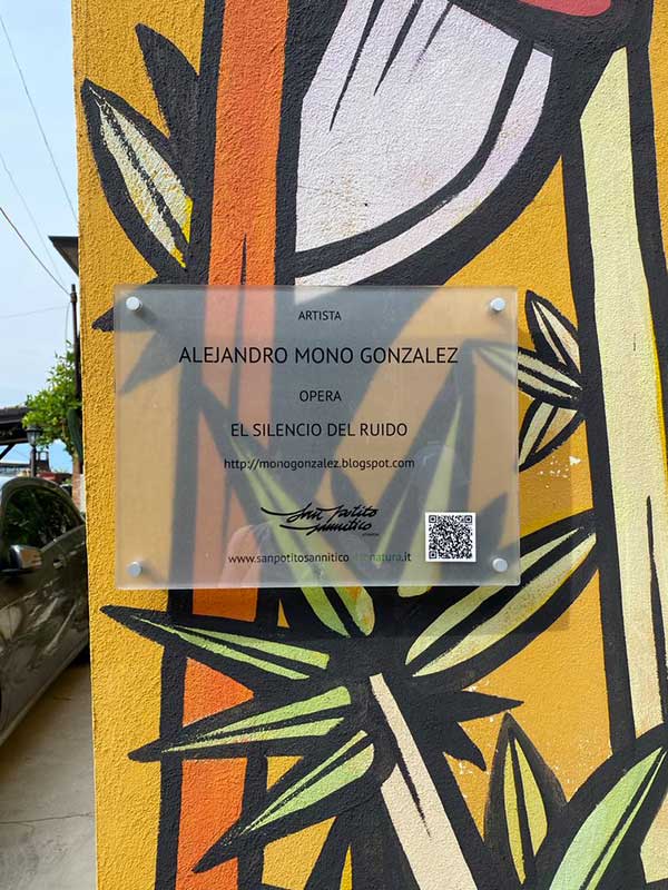 Avendo una guida , abbiamo potuto fare tante domande e conoscere tante curiosità, ma vicino ad ogni murales c’è una targhetta in plexiglass con il nome dell’opera d’arte, il nome dell’artista, e il Qr code che da tutte informazioni.