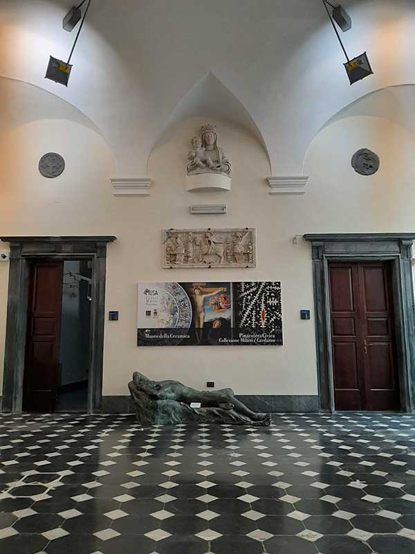Il percorso del Museo della Ceramica si articola su quattro livelli nelle sale del Monte di Pietà. Le ricche collezioni, per un totale di più di un migliaio di pezzi, sono organizzate per singole raccolte, a cui si alternano sezioni ordinate per cronologia e tipologia.