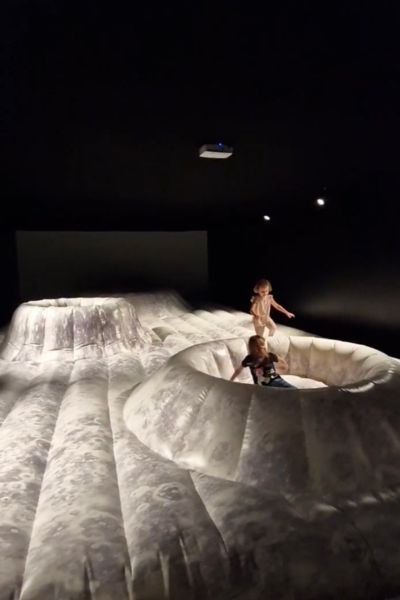 La sezione dedicata alle illusioni mostra gli eggetti della proiezione, la riflessione e il colore grazie a installazioni come la camera di Ames e la sedia di Beuchet. Entrare in un bagno all’incontrario è decisamente una scoperta! La biologia ci ha insegnato il Big Bang, la chimica ci ha permesso di espolorare le emozioni primarie… attraverso gli slime (non preoccupatevi: non sporcano!). Nella parte astronomica, poi, una gigantesca installazione gonfiabile riproduce fedelmente il paesaggio lunare. Saltarci e camminarci sopra, per i più piccini, è un’occasione imperdibile! Per non parlare del sommergibile, per immergersi negli abissi grazie alla realtà virtuale. O degli altri visori, che ti “teletrasportano” tra i dinosauri, sullo Spazio o in fondo al mare.