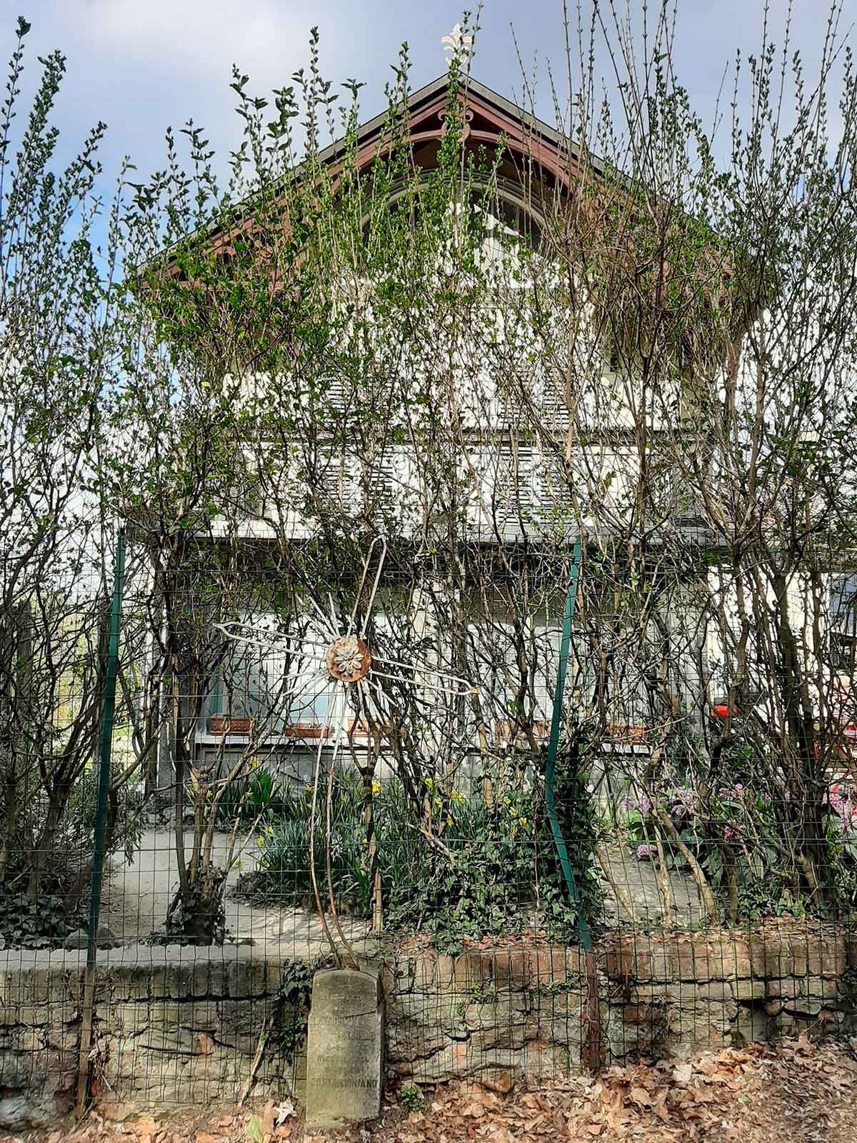 La parte che percorriamo noi comincia in strada Cartman e raggiunge il parco della Villa Ottolenghi, una dimora storica oggi ristrutturata. Questo sentiero era stato distrutto nel 2007 da una “bomba d’acqua” che trascinò a valle una grande massa di terra ed è stato ripristinato e ripulito da qualche anno, anche la cartellonistica è stata ripristinata e su di essa troviamo riportate le ville e le vigne del circondario.
