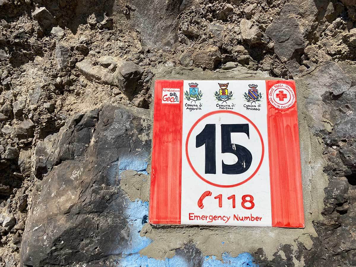 Il percorso è contrassegnato da segnali in bianco e rosso con la scritta sentiero 327. Troverai anche delle mattonelle numerate con il numero di emergenza: in caso di necessità, servono a comunicare la tua posizione ai soccorsi.