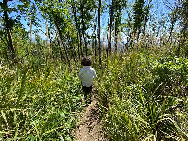 Il sentiero è tutto il salita, ma ci sono diversi punti all’ombra per fare delle soste.