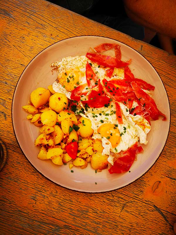 Alla malga Furtalm potrete scegliere tra ottimi piatti dolci o salati, ma in particolare vi consiglio assolutamente di assaggiare il ricco piatto composto da uova, speck croccante e patate arrostite: non avevo mai assaggiato nulla di così gustoso.