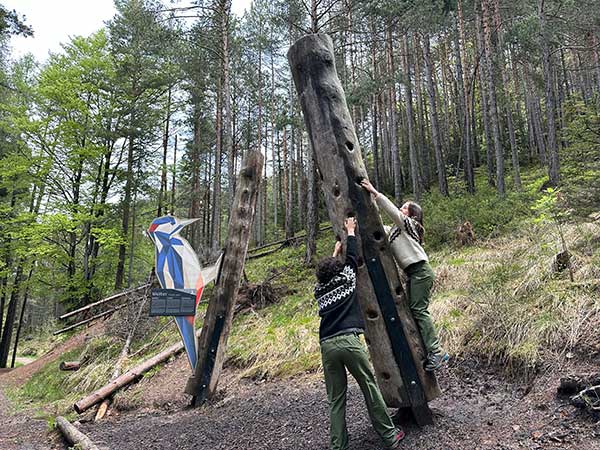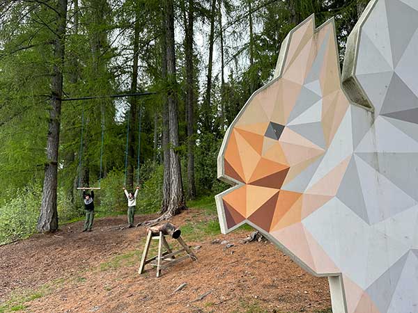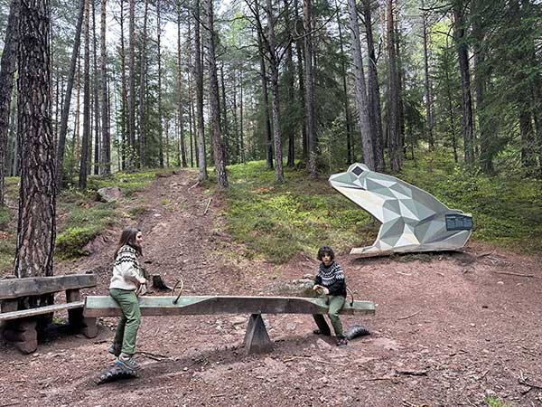 Nelle diverse stazioni c’è un animale, un pannello che ne racconta la storia e un gioco. Parliamo odi giochi semplici, altalene per volare come le farfalle, giochi di equilibrio, tronchi da scalare, come piccoli picchi.
