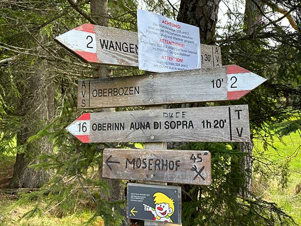 Il sentiero attraversa boschi e prati, fino al maso Lobishof , più o meno oltre la metà del sentiero quindi si prosegue con le ultime tappe, l’arrivo a un vero mulino e la trattoria Moserhof, con laghetto e un parco giochi.