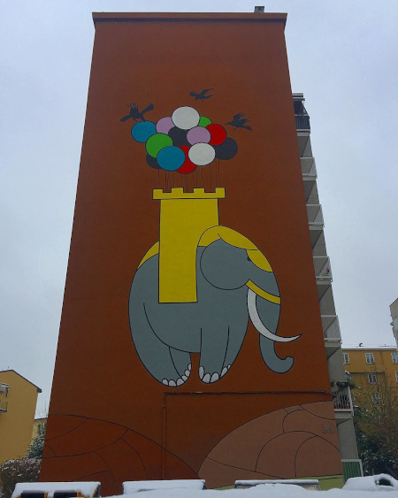 A Imola infatti si tiene ogni anno a settembre questa importante manifestazione artistica, ogni volta in una location e con un tema diversi. Il 2020 è stato dedicato alla sostenibilità ambientale e la zona interessata era principalmente Viale Dante. Tra le altre opere nate in questa edizione c’è stata una bellissima e scultura permanente realizzata dall’artista portoghese Bordalo, con materiali di scarto collocata nella corte interna di due scuole.