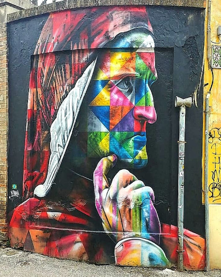 Menzione speciale per l’opera di Kobra in Via Pasolini. Vicino alla tomba di Dante, il poeta è ritratto in tecnicolor dallo street artist tra più celebri al mondo. Le ragazze di Street art Finders ci consigliano poi anche la zona stadio.