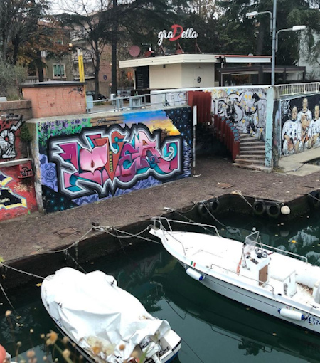 A Ravenna la zona più interessante dal punto di vista dell’arte di strada è sicuramente la Via Tommaso Gulli, chiamata, Cittadella della street art, dove si svolge anche il festival.