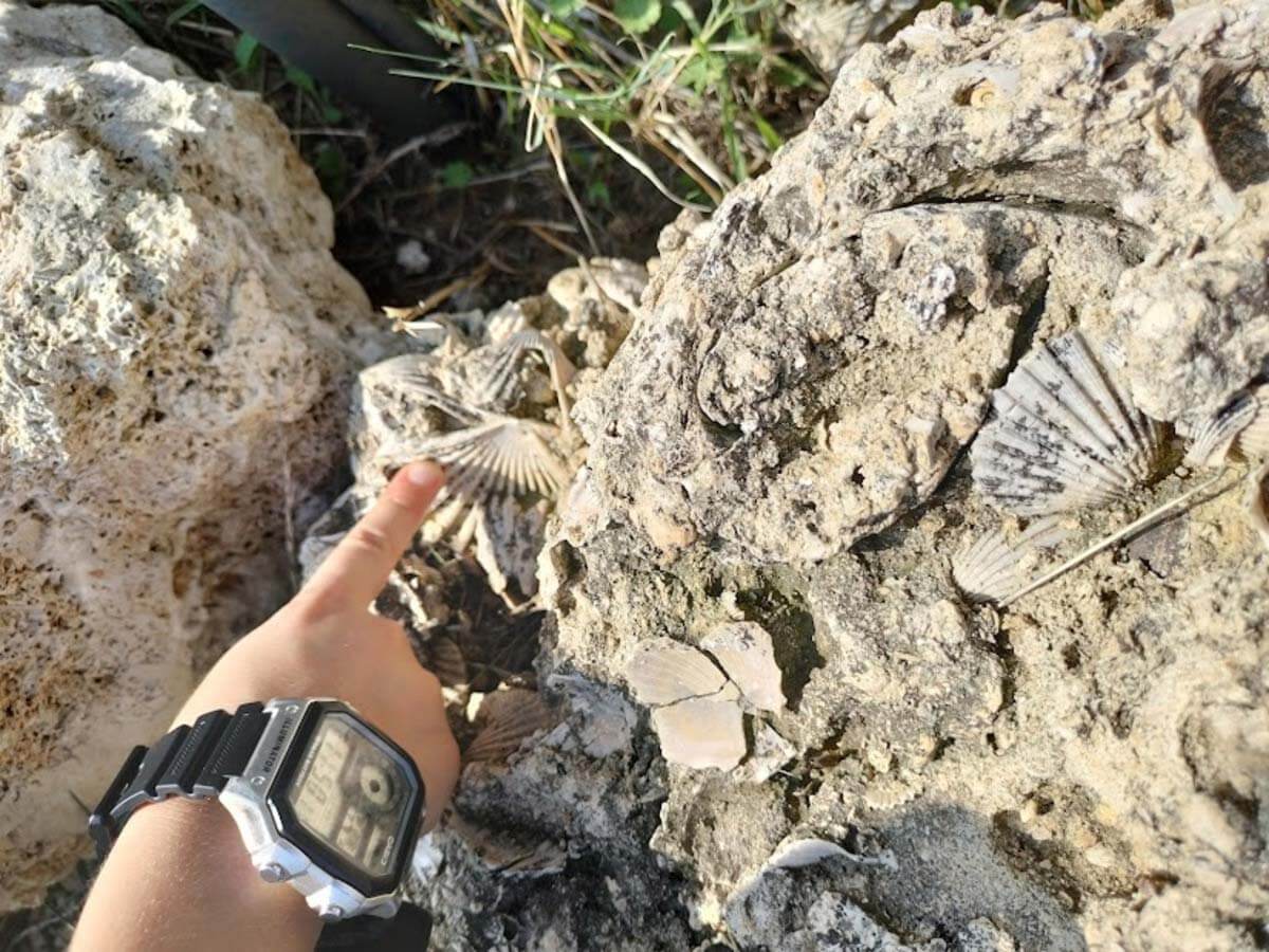 Avremmo da qui dovuto raggiungere anche il fossile 7, il cavalluccio marino, ma il caldo ha avuto la meglio e abbiamo deciso di tornare verso le auto per raggiungere, invece, il fossile 1 sulle colline di Casorzo, dove abbiamo assistito allo spettacolo del mare di pesci immersi nell’azzurro del cielo tra i filari di uva appena colta per la vendemmia.