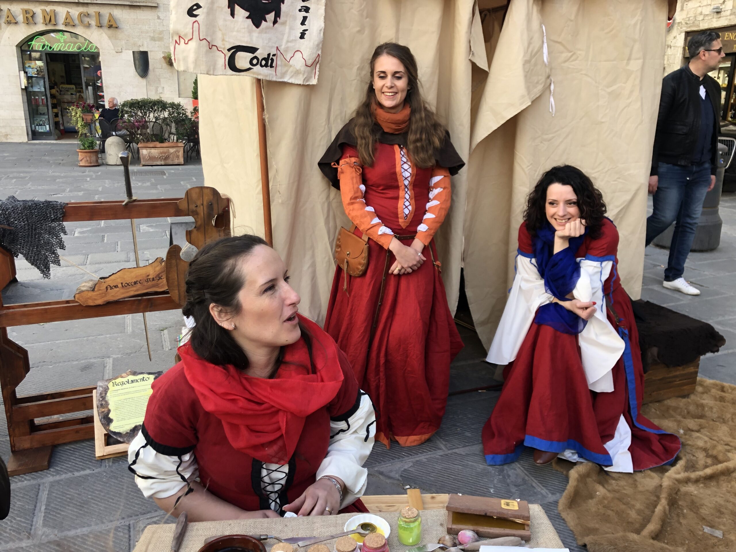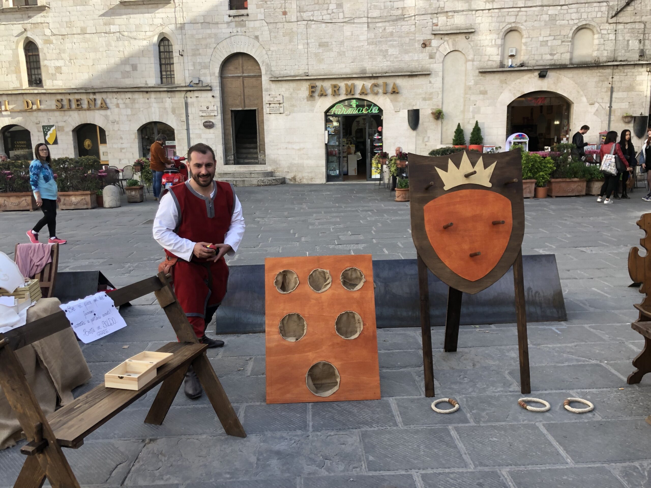 Con i bambini abbiamo passeggiato per Todi, fermandoci a vedere le gare di arco, mangiando un gelato, o giocando ai laboratori organizzati dal Gruppo Danze Medievali Todi: abbiamo dipinto, giocato a tris e ci siamo sfidati al tiro al bersaglio. I ragazzi e le ragazze del Gruppo Danze medioevali sono super gentili.