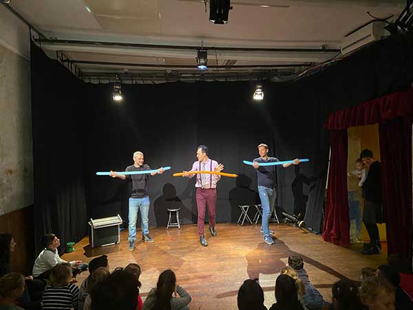 Dopo essersi rifocillati si passa nel piccolo teatro ad assistere allo spettacolo, che nel nostro caso ha incantato i bambini e fatto ridere fino al mal di pancia i genitori.