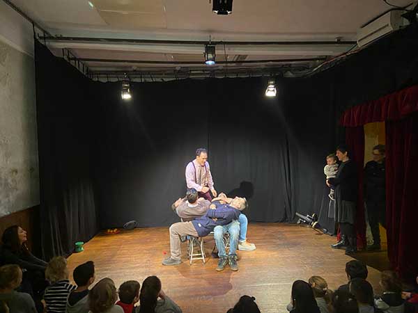 Ogni domenica da ottobre ad aprile alle 10 del mattino e alle 16 del pomeriggio è possibile portare i bambini ad assistere ad uno spettacolo di giocoleria, teatro, illusionismo, magia, ombre, burattini e storie mirabolanti.