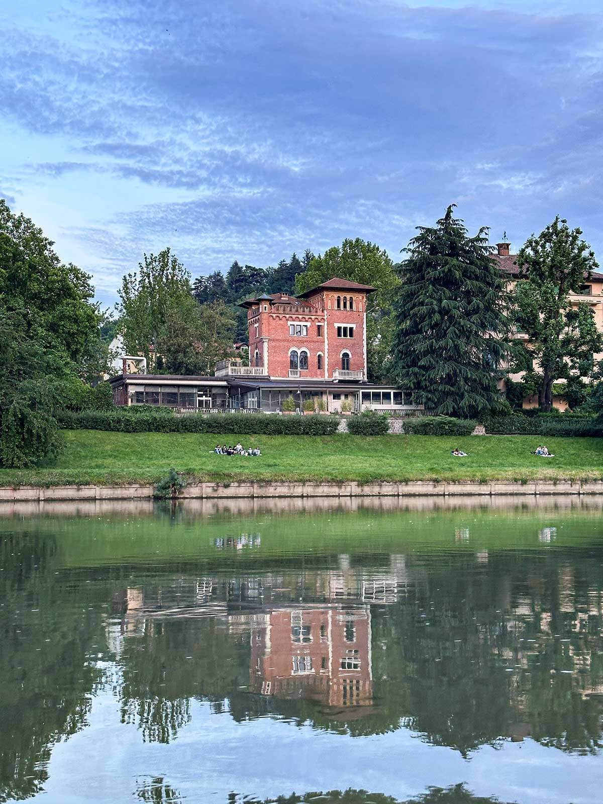 Raggiungiamo in poche pagaiate il Ponte Vittorio Emanuele I e ammirato la Gran Madre di Dio e le facciate dei palazzi di piazza Vittorio Veneto riflettersi nell’acqua. Poi, costeggiando i Murazzi, gli ex magazzini di rimessaggio delle barche, accompagnati dalla musica dei locali, abbiamo oltrepassato il Ponte Umberto I. Ivana ci racconta le leggende della Madama Reale, e le storie dell’Esposizione Generale Italiana Artistica e Industriale… mentre remiamo immaginiamo i padiglioni lungo le rive del Po.
