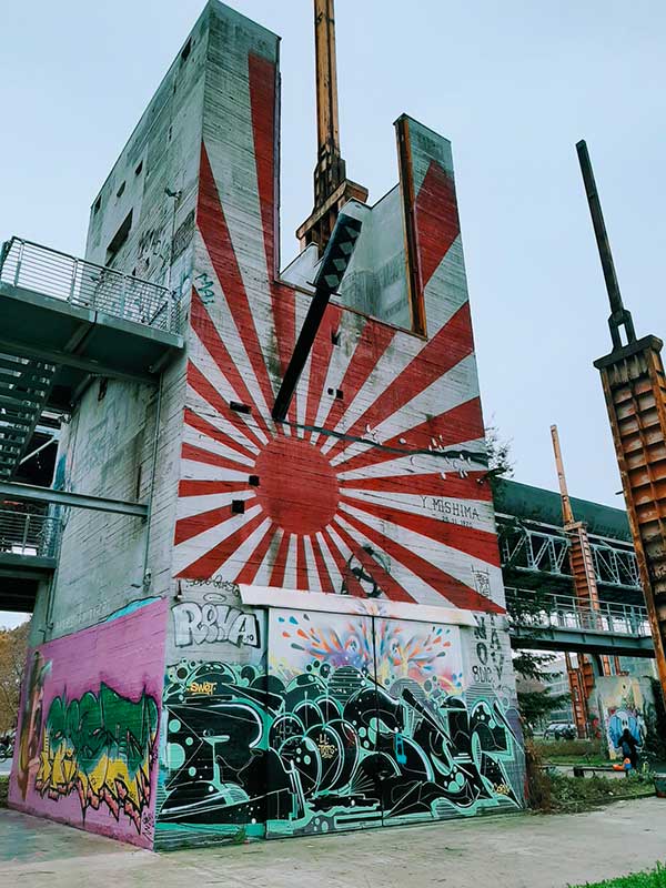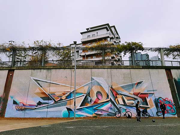 Entrando nel vivo del Parco Dora, ci accorgiamo di quanto l’arte urbana e i graffiti writing abbiano dato colore a un’imponente spazio industriale smantellato. Camminiamo tra i pilastri delle ex fabbrica Teksid, teatro in quest’ultimo due decenni di festival di musica, congressi, feste di fine del ramadan, esposizioni, oggi ritrovo di giovani skater, di chi vuole giocare a basket o fare una roda di capoeira e siamo circondati da opere di street art, un vero e proprio museo a cielo aperto.