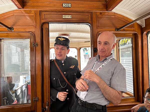 Tutti i tram Atts hanno una guida a bordo. Il tram Atm 502, partito da piazza Carlina aveva due guide eccezionali. Il professore Stefano Cerrato, che dal lunedì al venerdì è un docente di Diritto all’Università, ma nel weekend indossa la divisa anni Trenta e la borsa di cuoio e diventa “un tranviere”.