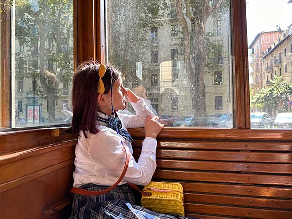 Lo Stefer Roma, n° 312 per “Cinecittà, costruito nel 1935 e restaurato nel 2010, che partito da piazza castello ha seguito il percorso della linea 7. “Il tram 312 faceva servizio tra la stazione termini e Cinecittà e Fellini lo utilizzò come set per il suo film Intervista.”, ci racconta la guida mentre il tram scorre sui binari. Il giro è piacevole e dura mezz’ora, il tempo perfetto per intrigare i bambini, che guardano fuori dal finestrino, senza annoiarli.