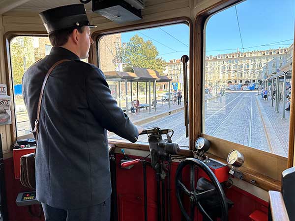 “Un tram non porta solo persone, ma anche emozioni”, dice Gianfranco che con Stefano ci accompagna nel giro. E vogliamo partire da questa frase capovolgendola, il giro sul tram storico a Torino ci ha conquistato per le persone che ci hanno regalato emozioni: Stefano vestito da tranviere, Gianfranco che ci ha raccontano le parole di De Amicis durante il giro, i ragazzi dell’associazione giovanissimi e sempre sorridenti che ci hanno guidato al capolinea, in salita e in discesa. Si vede quando qualcuno fa qualcosa divertendosi e con passione.