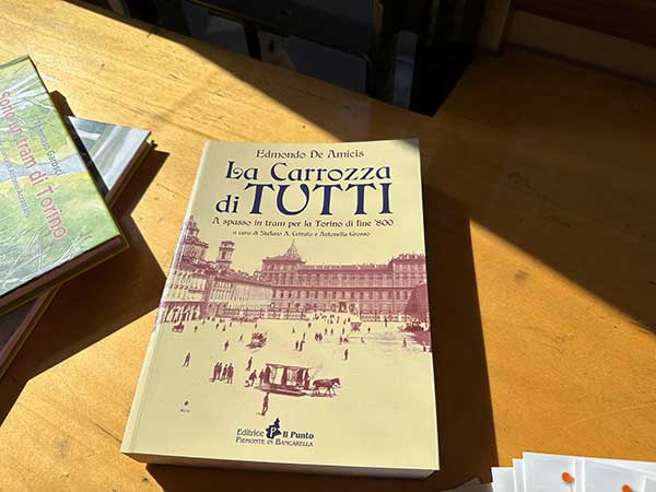 Non si paga nulla, ma si può ( e secondo noi si deve perché tutti i soldi vengono utilizzati per restaurare i tram e tenere vivo il ricordo) lasciare un’offerta o comprare un libro, noi abbiamo acquistato il libro La carrozza di tutti. A spasso in tram nella Torino di fine Ottocento, di Edmondo De Amicis nella ristampa a cura proprio di Stefano A. Cerrato e Antonella Grosso.