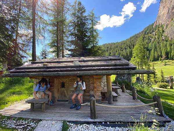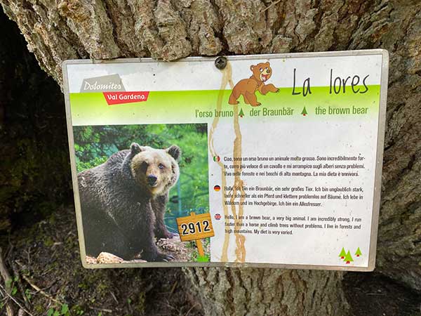 Ecco perché per i bambini è stata creata una grande caccia all’animale. Da Selva partono tre sentieri diversi con 26 statue scolpite nel legno dagli studenti della scuola professionale per l’artigianato di Ortisei. Ad ogni animale è abbinato un numero e un cartello con tante informazioni spiegate in maniera semplice e accattivante.
