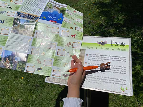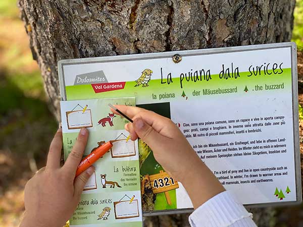 E attenzione, gli animali sono ben mimetizzati nel bosco, è una vera e propria caccia al tesoro nei boschi, in cui i bambini imparano tante piccole curiosità sugli animali che popolano la Val Gardena.