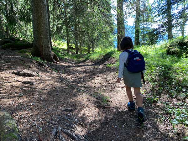 Io ti consiglio di prenderlo dalla Baita Ciampac, perché così la strada è quasi tutta in discesa e se i bambini sono stanchi a un certo punto, puoi deviare per il sentiero 12A, perdere qualche animale, ma arrivare prima in paese.