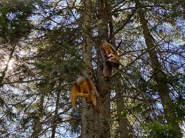 Enrico e Giulia erano scatenati, la caccia al tesoro li ha fatti camminare come due stambecchi, ma soprattutto gli animali di legno, non solo sono realizzati a grandezza naturale, ma, proprio come i veri animali, si nascondono tra i rami degli alberi, nel sottobosco, tra i cespugli.