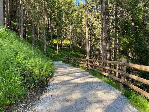 Il sentiero 12 B, lo puoi prendere da due parti: dalla Baita Ciampac o sotto l’albergo lo Scoiattolo, in paese.