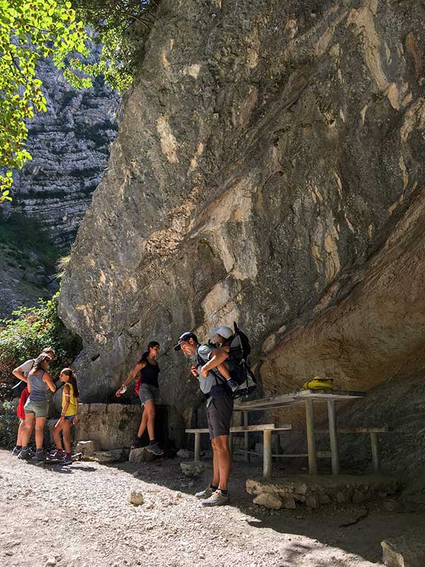 Se avete bimbi piccoli oppure non è la giornata giusta per una passeggiata potete fermarvi qui, basta salire sul sentiero e svoltare dietro la parete rocciosa e troverete alcuni spiazzi verdi dove improvvisare un pic nic.