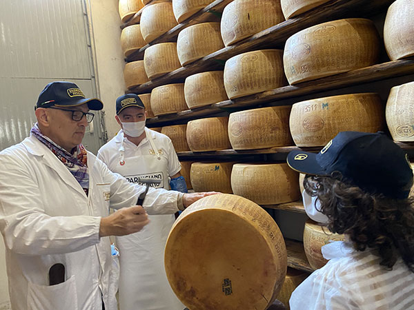 In un caseificio del Consorzio del Parmigiano Reggiano si impara sul campo la storia e la tradizione italiana.
