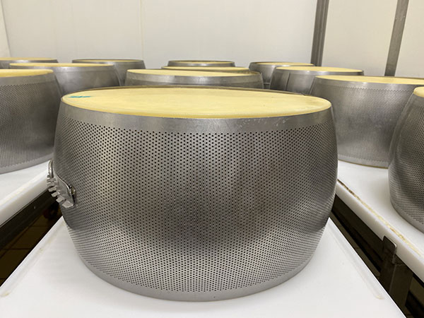 A questo punto le forme pesano circa 44 chili e vengono spostate in una nuova sala, a circa 17 gradi, per la stagionatura.
