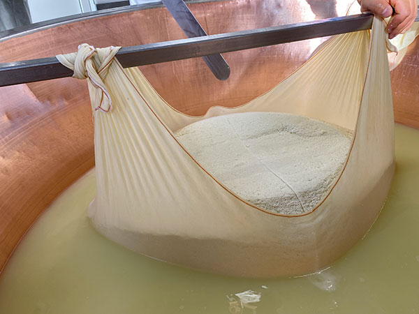 Durante la fase di cottura il casaro deve ottenere la cagliata perfetta, morbida al punto giusto, anche tre decimi di temperatura possono fare la differenza.