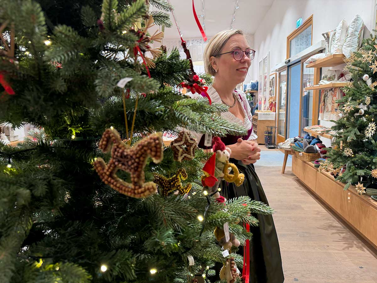 L’artigiana che oggi tiene viva questa tradizione si chiama Helga Gastl. Il suo laboratorio durante l’Avvento si prende vita all’interno dell’Salzburger Heimatwerk, al primo piano, nel salone dedicato alle dimostrazioni. Helga mostra al pubblico un’antica tradizione ormai quasi dimenticata del Salisburghese e della Baviera. Nel salone del primo piano è possibile ammirare i suoi lavori già finiti oppure provare a decorare un uovo insieme a lei: materiali e supporto sono messi a disposizione sul posto, un modo perfetto per vivere l’Avvento in maniera creativa.