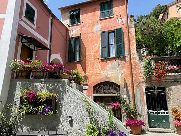 Sul corso principale di Manarola si affacciano le abitazioni colorate. E l’intero paese si sviluppa attorno al corso, ora coperto, del torrente Groppo; da esso partono una serie di stretti vicoli lastricati in pietra che raggiungono le case sui fianchi del promontorio e degli orti. Parallelo all’asse principale si snoda il percorso della cosiddetta via di Mezzo, che rivestiva grande importanza nella viabilità del borgo prima della copertura del torrente.