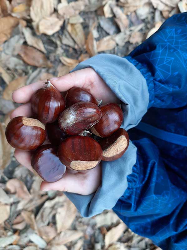 Dal cimitero del paese (ma si può percorrere anche in senso inverso) parte, infatti, un sentiero che attraversa il bosco circostante seguendo un percorso circolare adatto a famiglie con bambini camminatori e anche a passeggini (anche se consiglierei la fascia o il marsupio). Attenzione però! Questa passeggiata non è la tradizionale sgambettata tra i castagni e le foglie autunnali: si dice che in questo bosco viva il Servanot, uno spiritello dispettoso metà uomo e metà animale, e che ogni tanto si mostri agli umani per giocar loro qualche tiro mancino.