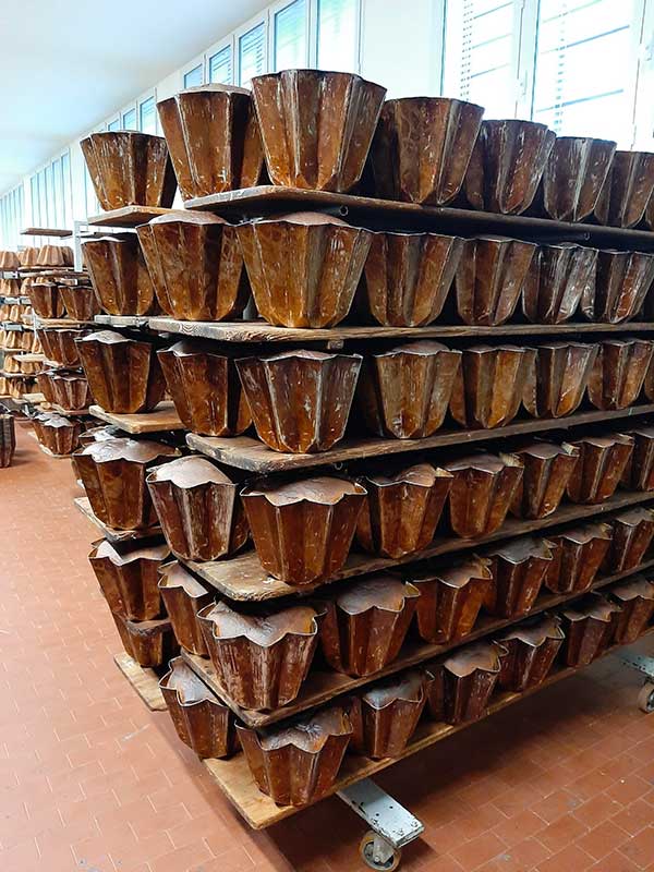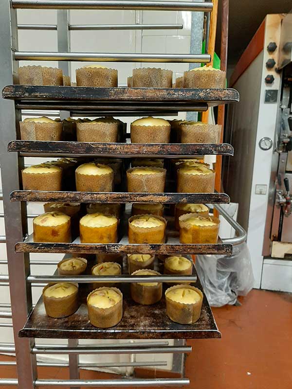 L’impasto composto di burro, zucchero, tuorlo, farina, acqua, miele e lievito madre, viene preparato nel tardo pomeriggio e trasferito nelle vasche a riposare. La mattina prestissimo (circa 12 ore dopo) il composto ha quadruplicato il suo volume. A questo punto viene reimpastato e si aggiunge il gusto che si preferisce: marron glacè, cioccolato e pere, frutti di bosco, albicocca, moscato d’asti.