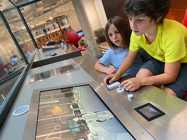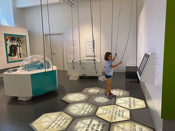 Vi dico solo che all’ingresso c’è un grande scivolo e che noi ci abbiamo dedicato tre ore, e sono poche. È un museo meraviglioso, in cui tutto si sperimenta. Alcune sale sono complesse e adatte a bambini dai 10 anni in su, ma grazie a tanti oggetti interattivi realizzati sulla base del principio “causa-effetto” si ha la possibilità di conoscere meglio la tecnica “toccandola con mano”. Ci sono tante postazioni multimediali.