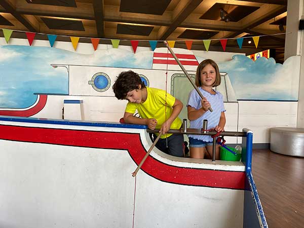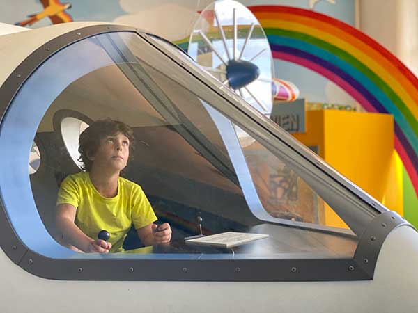 La zona del museo riservata ai bambini – con nave, universo, macchinine da guidare, aeroporto.
