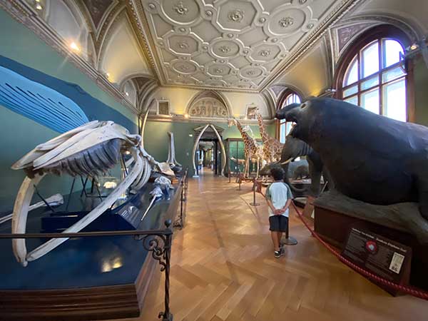 Fatta questa premessa, il Museo di Storia Naturale non solo si trova in un bellissimo palazzo nel quartiere dei musei, ma ha comunque enormi sale che conquistano i bambini, dalla sala dei dinosauri (c’è un dinosauro che si muove, ma niente a che vedere con i dinosauri del museo di Londra) a quella delle pietre preziose. Enrico e Giulia si sono divertiti moltissimo a vedere come sarebbero stati con i tratti degli uomini preistorici e a guidare una navicella sulla luna.