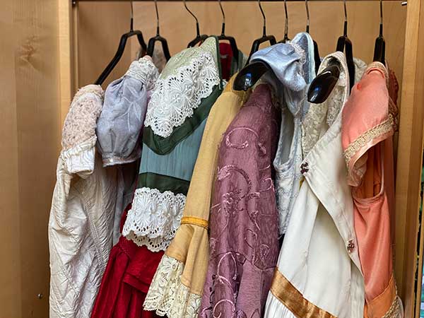 Nell’aria esterna c’è una sala per travestirsi da dame e cavalieri, con armadi divisi per età, specchi, cuffie, nastri, cappelli…cavalli a dondolo, troni e carrozze.