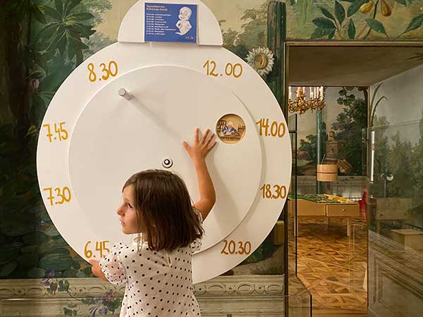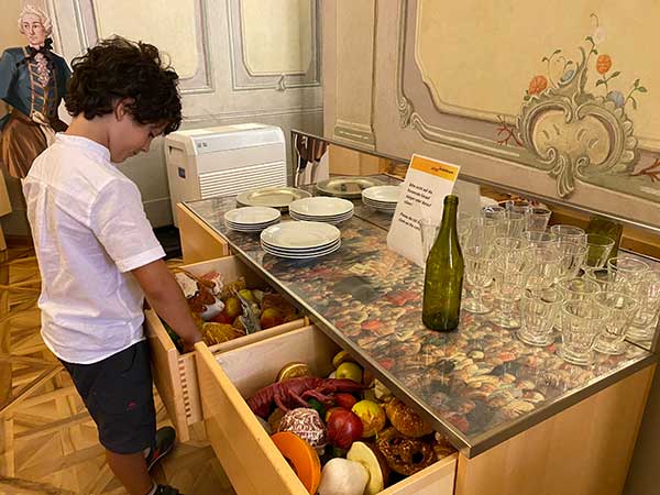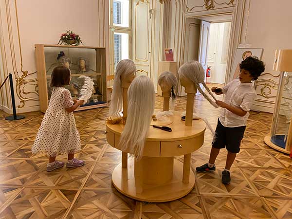 L’idea vincente di questo museo non è tanto la location – dodici sale dell’ala occidentale dell’ex residenza asburgica – quanto che tutto si può toccare. Ci sono cassetti da aprire, bambole da vestire, cartine da comporre. E soprattutto, giocando, i bambini i imparano come vestivano i nobili e come vestivano i poveri, le differenze di classe, come era imbandita una tavola ai tempi degli imperatori d’Asburgo.