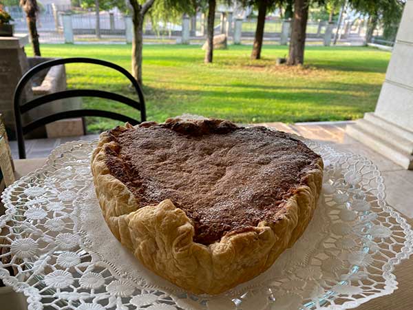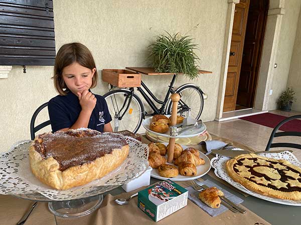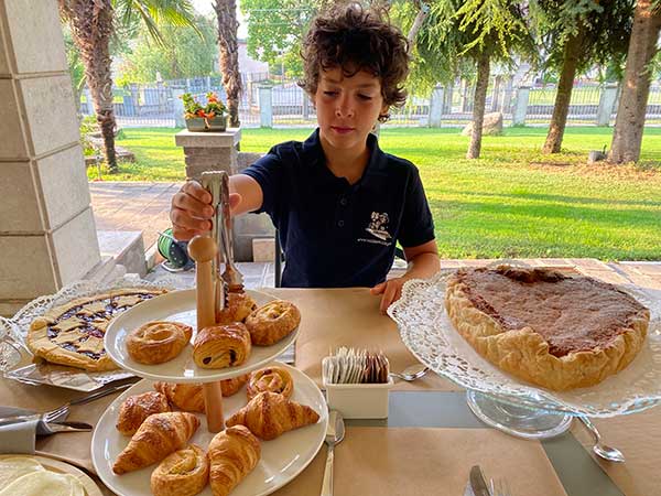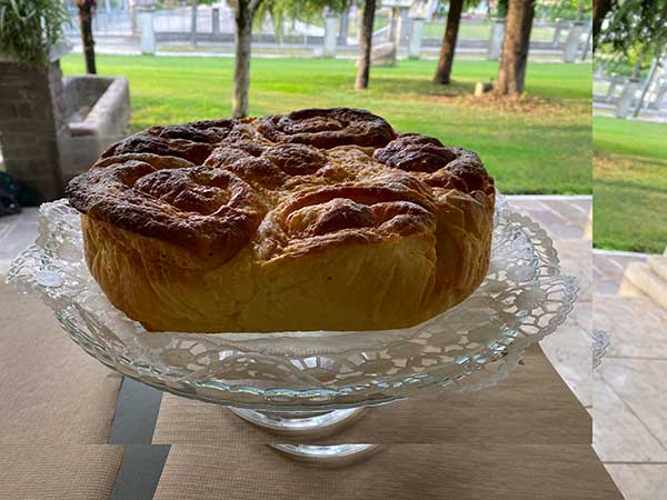 Ogni mattina oltre a cornetti, cereali, vassoio di prosciutto e formaggi, succhi, latte e caffè, abbiamo trovato due torte: una crostata e una torta tipica veronese: il primo giorno la torta russa e il secondo la torta di rose, con la leggenda scitta vicino.