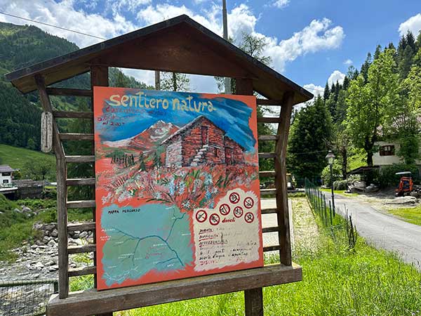 Il Sentiero Natura si snoda nelle immediate vicinanze del Comune di Carcoforo, lungo un percorso che nel periodo invernale è adibito allo sci di fondo. I punti d’interesse sono corredati da pannelli illustrativi. L’itinerario si estende per circa 2 km incastonato tra pascoli alpini, boschi suggestivi e radure che offrono scorci su meravigliosi paesaggi.