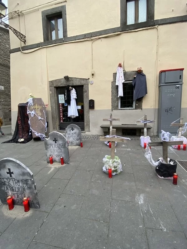 Quando abbiamo deciso di venire nella Tuscia per il weekend dei morti, avevamo deciso di partecipare ad Halloween nel bosco nel Parco cinque sensi, vicino Vitorchiano. Ma non immaginavo che a Vitorchiano stessa avrebbero organizzato una delle più belle feste di halloween a cui abbiamo partecipato. Quando ci siamo svegliati la mattina del 31 ottobre, abbiamo visto che stavano iniziando ad allestire il borgo, cosi abbiamo deciso di rientrare nel pomeriggio in tempo per la festa.