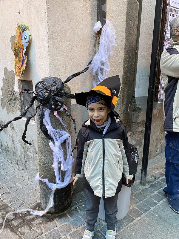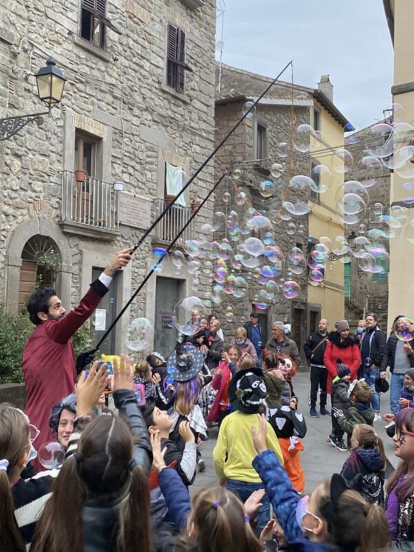 E abbiamo fatto proprio bene! Una festa organizzata dal comune, totalmente gratuito, con giochi e spettacoli di bolle per i bambini. Tutto il borgo è stato addobbato a tema halloween: un intero cimitero con tanto di bare e fantasmi fluttuanti hanno invaso la piazza centrale, mentre i bambini erano eccitati dallo spettacolo di bolle.