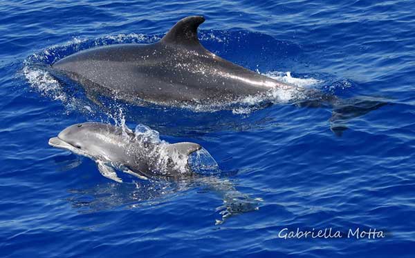 Durante la nostra incredibile escursione di Whalewatching nel mare della Liguria siamo stati avvistati a nostra volta da due branchi di stenelle. Sì perchè una volta che questi simpatici e intelligentissimi animali ci hanno intercettato ci hanno seguito per un breve periodo di tempo per giocare tra le onde della barca – fanno surfing senza bisogno della tavola! – e per osservarci. Ci è capitato di osservare sia esemplari adulti che amavano saltare tra le onde, sia gruppi di mamme con i loro cuccioli, naturalmente più timidi e schivi.